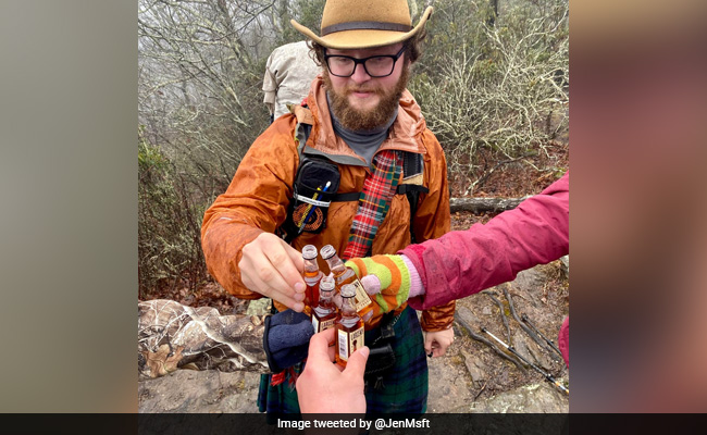 A photo of a group of hikers has left social media users scratching their heads in confusion - and chances are that it will make you do a double take too. The picture shows the group raising a toast during their hike - but while there are four bottles in the image, most people can only see three hands. Strangely enough, the third bottle appears to be floating mid-air at first glance.