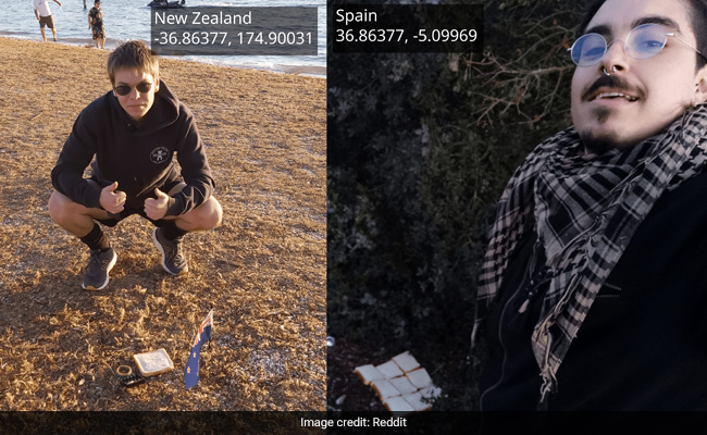 Two men in New Zealand and Spain have created an "Earth sandwich" by placing slices of bread on precise points at either side of the planet, it was reported on Monday.