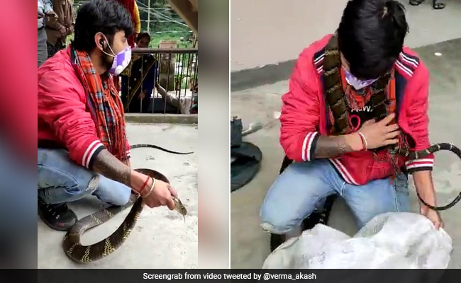 The clip was shared on Twitter by Indian Forest Services officer Akash Kumar Verma, who credited it to DFO Nainital. It shows a snake rescuer reaching under a table to catch the king cobra and, having captured it successfully, taking it to the rooftop area of the house. As curious bystanders watch, the rescuer was placing the serpent in a sack. At one point, the snake even began wrapping itself around his neck, eliciting shocked gasps from the audience.