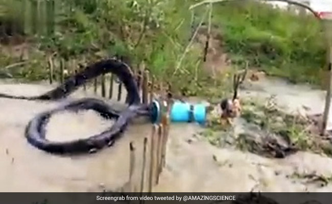 In the video, the snake indeed appears to be massive. It is seen swimming across a muddy lake to stick its head inside a huge blue drum, getting trapped and writhing furiously in water. The video, which first appeared online over two years ago, has been viewed more than a million times on Twitter.