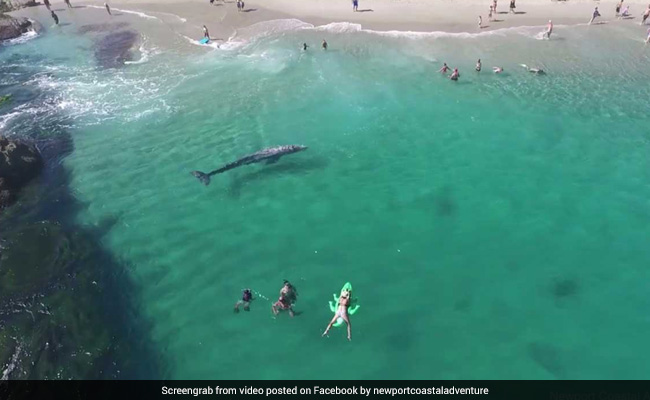 An incredible aerial video, shared by Newport Coastal Adventures, shows a gray whale swimming in the shallow waters of a beach in southern California, USA. The whale was spotted at Dana Point Harbor on Tuesday morning, according to the Daily Mail. It swam within a few feet of beachgoers, very close to the shore. Sheriff's deputies and others managed to coax it back into the sea, reports NBC Los Angeles. The incredible video of the baby whale has been viewed over 1.7 million times on Facebook.