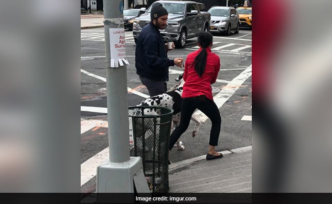 The 38-year old saw the dog in danger when he was reportedly out for a morning walk with an unidentified woman.
