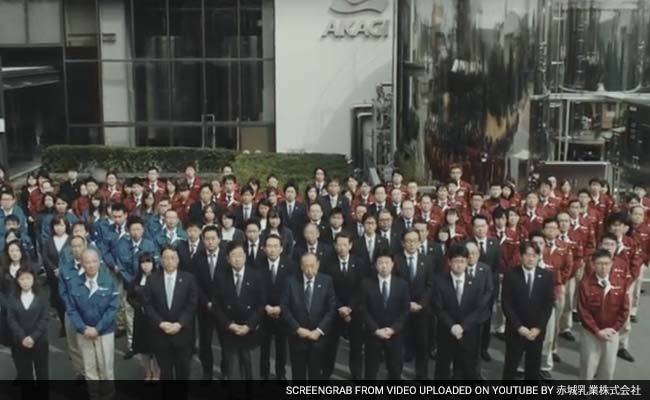 The clip begins with a close up of Akagi Nyugyo's executives staring into the camera, arms folded, as they stand in front of the company's headquarters about 75 kilometres (46 miles) northwest of Tokyo.