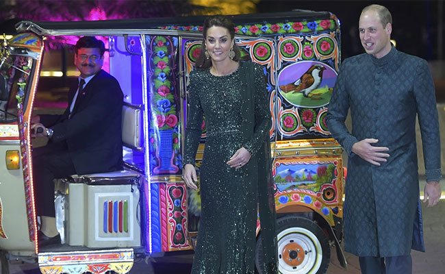 The Duke and Duchess of Cambridge, Prince William and Kate Middleton reached the National Monument in Islamabad for a dinner hosted by the British High Commissioner in Pakistan in a specially painted motorised rickshaw.