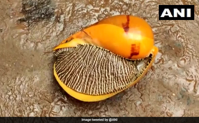 An unusually large sea snail, found on the banks of a river in East Godavari district of Andhra Pradesh, has been reportedly fetched Rs 18,000 at an auction. According to news agency ANI, the snail was identified as Syrinx Aruanus - a species of snail that is one of the world's largest across both land and water. It can grow up to 70 cm in length and weigh up to 18 kg. Popularly known as Australian trumpet or false trumpet, these carnivorous snails are vulnerable to local extinction as their shells are popular ornaments. The orange-coloured snail was found on the river bank, ANI said in a tweet, sharing three pictures of the enormous snail.