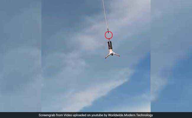 Distressing footage of the incident has captured the moment the man's bungee rope snaps, sending him hurtling to the ground after he jumps from a platform. Witnesses are heard screaming as he falls into an inflatable cushion.