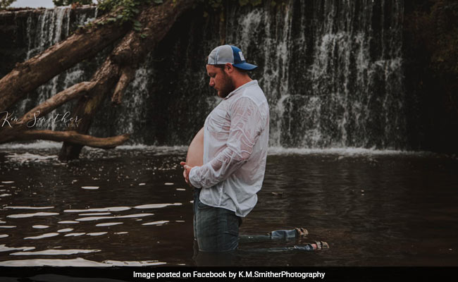 Jared, who knew his wife was upset at missing the maternity photoshoot, decided to do something unexpected to cheer her up - he took her place in the photoshoot, his belly serving as the baby bump. The photographer, his sister-in-law, was happy to oblige, and the result was a series of photographs that show Jared posing around a waterfall.