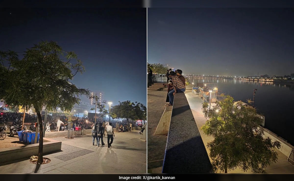 Kartik Kannan, a man from Bengaluru, took to social media to express his admiration for Ahmedabad's lively late-night atmosphere. "Ahmedabad is buzzing for 1 am with a very festive feel," he wrote while sharing photos of the city at 1:00 am. "I wish we had a place in Bengaluru where we could walk out at midnight around a central place without police breathing down our necks."