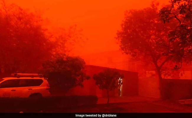One Twitter user shared incredible photos of the sky in Niamey taking on a crimson hue because of the storm.