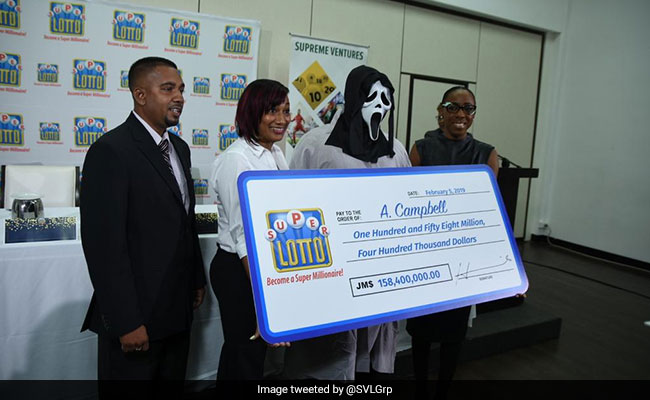 Winning the lottery may seem like a dream come true, but the fear of getting robbed after that? Not so much. That's why one lottery winner in Jamaica decided to hide his identity by wearing a Ghostface mask from the Scream movie series while collecting his cheque, giving social media some hilarious pics in the process.