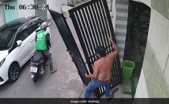 It was a close shave for a bike rider in Ho Chi Minh, Vietnam, when an iron gate almost fell on him while he was passing through an alley. A video of the incident, lasting a little over a minute, shows the entire sequence of events. On another day, the incident could have caused massive injury to the bike rider. However, thanks to another man's reflex action, no damage was caused. “An iron gate falls just as a motorcyclist is passing through the alley. Luckily, the man behind the gate catches it before it strikes the rider," read the caption of the video.