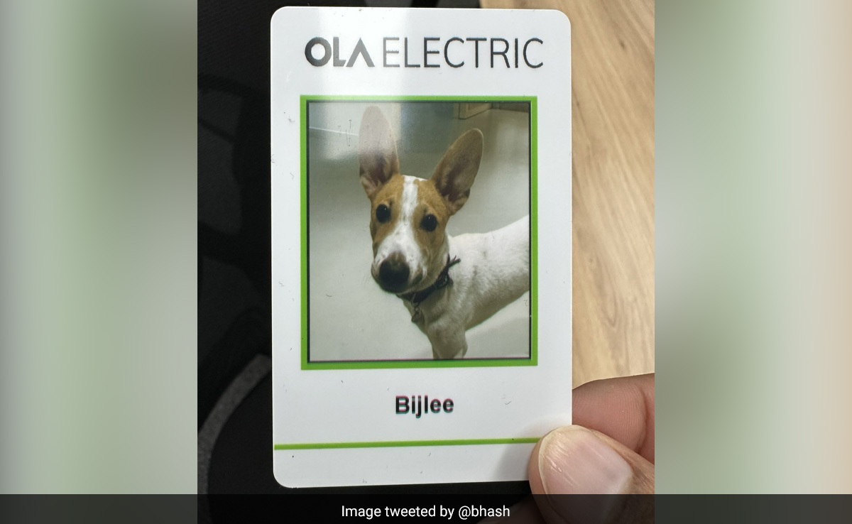 Mr Aggarwal shared a photo of the canine and its official Ola Electric ID card, the Twitter post has gone viral on the internet. Bijlee's employee code on the ID card is '440 V', an apparent reference to the standard voltage in electrical systems. The card also mentions the dog's blood group as 'paw+ve', playing on the word 'positive and referencing its paws.
