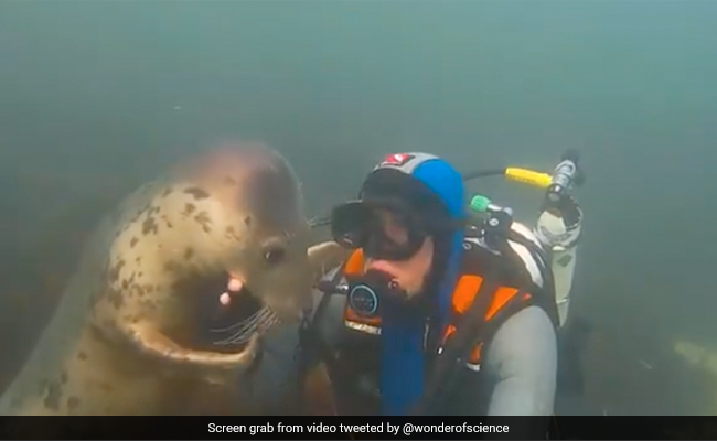 The viral video shows a scuba diver gently adoring a seal while diving beneath the water, and the marine mammal can also be seen adoring the man by grasping his hands and placing his hand in its mouth.