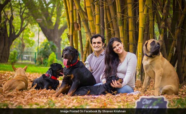 'Not without my dogs' was one woman's message to everyone telling her to get rid of her dogs when she was pregnant. She reiterated her message with a wonderful pregnancy photoshoot featuring her husband and all her pets. "My dogs are the reason I got through my pregnancy with my sanity intact," said Sanjana Madappa, who works in animal welfare. Her message and photoshoot are now going viral on Facebook. Since being shared on the social networking site by Shravan Krishnan some 23 hours before writing this, the post has collected over 11,000 reactions and more than 4,000 shares - and still very much counting.