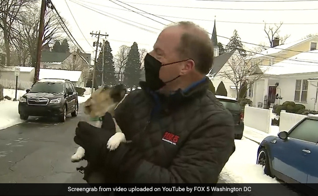 A wholesome video shows a puppy running up to a reporter on live TV. Fox5 reporter Bob Barnard was delivering a weather report on the icy conditions in northern Virginia when the puppy ran up to him from a nearby house. Footage of the adorable interruption, which occurred last Friday, has now gone viral on social media, racking up more than a million views on YouTube.