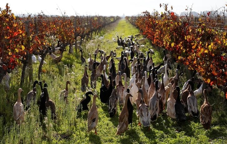 "Before we had the ducks we had to put down snail bait, a pesticide. But, for the past nine years I have been here we've used very little snail bait, almost nothing, because the ducks eat all the snails and other insects," vintner and horticulturalist, Marlize Jacobs, told Reuters.