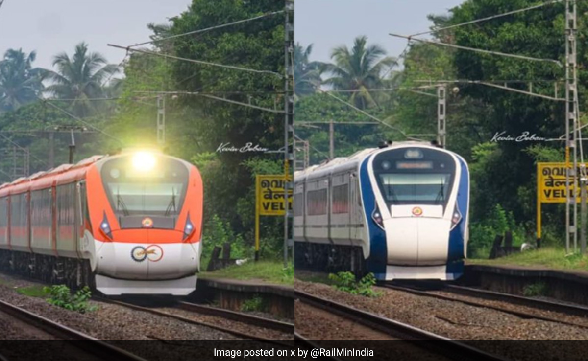 The Railways posted a picture of both blue and tangerine colour Vande Bharat Express, crossing Vellayil Station in the Thiruvananthapuram- Kasaragod section of Kerala. Hopping on the ongoing trend, the Railways also used the viral catchphrase of the season to compliment the trains.