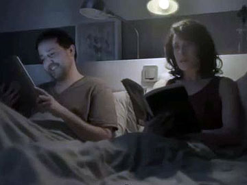 In the hilarious commercial below, a smug husband irritates his increasingly frustrated wife by replacing her post-it notes, paper crossword and book-reading with digital versions on his tablet. "Emma," he sighs despairingly at her sheets of paper as she withers him with a basilisk's stare.