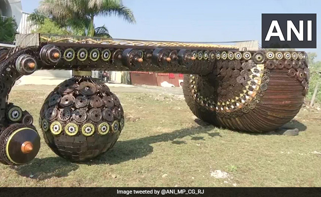 A group of artisans in Madhya Pradesh's capital city Bhopal created a remarkable "Rudra Veena" out of scraps and trash that weighs five tonnes. The veena measures 28 feet long by 10 feet broad and 12 feet tall, news agency ANI reported. About Rs 10 lakh was spent on its creation by the artists and the work was completed in around six months. According to the team, it is the largest Rudra Veena ever produced.