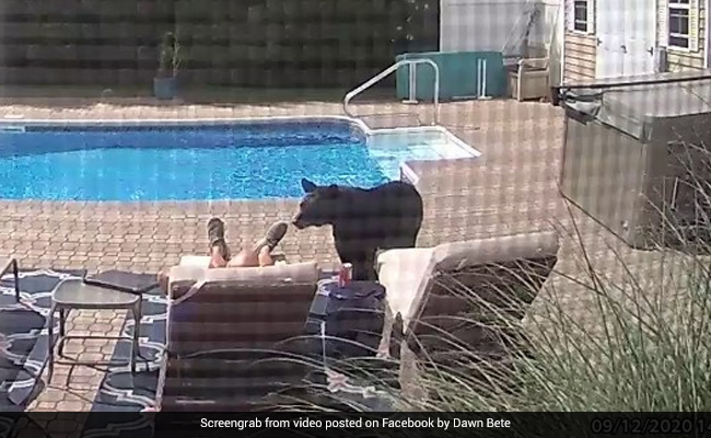 A Massachusetts man was woken up from his nap by a bear nudging his feet. Matthew Bete, of Greenfield, was sleeping by his pool on Saturday when a bear walked in through an open gate, reports the Daily Mail. Footage captured by security cameras show the bear walking around and even taking a sip of water from the pool before approaching Mr Bete.
