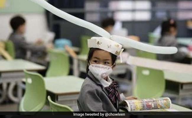 A video shared by the Chinese news outlet shows first graders at the Yangzheng Elementary School sitting in a classroom with desks arranged in single rows. The students, with their faces covered with masks, were seen wearing colourful headgear with extended plumes made out of cardboard and, in one case, balloons. The school allowed students to wear the headgear to remind them to keep their distance from each other.