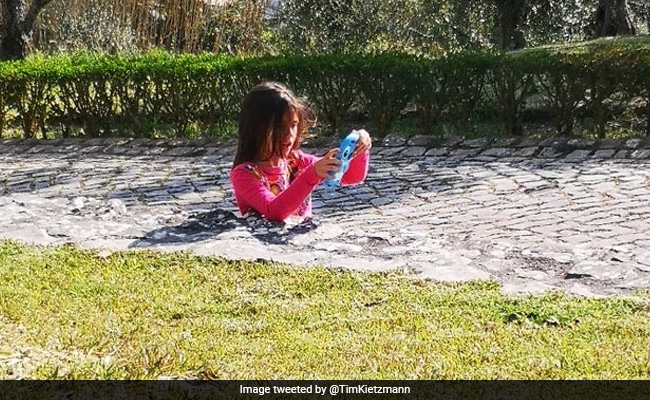 The photo shows a girl, dressed in pink, playing outdoors. While that in itself sounds innocuous enough, what is making people do a double take at the photograph is the camera angle and positioning that makes it look like the girl is submerged waist-deep in grey concrete.
