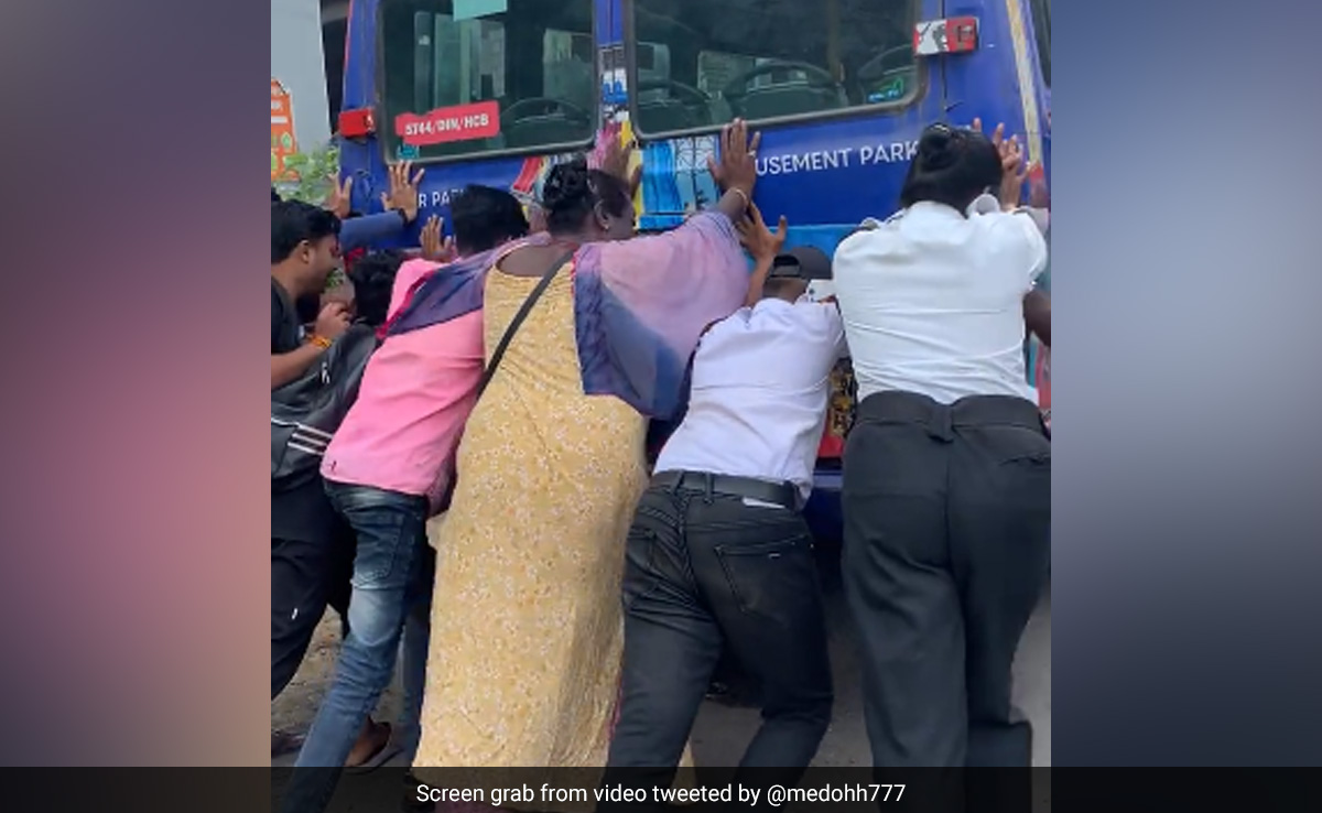 On Saturday, Mumbai Police shared a video that shows several passengers coming together to push a BEST bus after it broke down near a flyover.