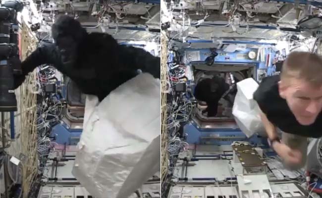 A video posted by him on Instagram a couple of hours ago shows a massive gorilla exiting a white bag and floating about in zero gravity on the space station. It then goes on to chase British astronaut Tim Peake who tries his level best to float as far away as possible from the huge animal. The video is also accompanied by this-is-a-funny-prank music.