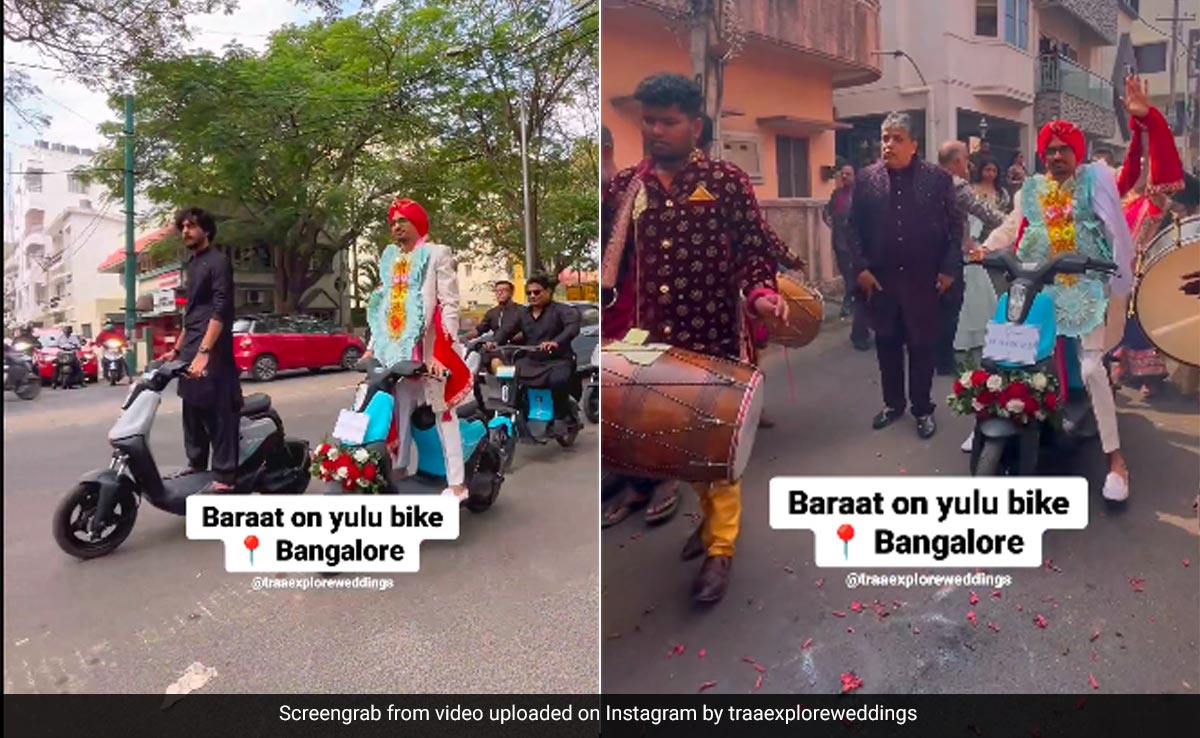 In the clip, all members of the wedding procession are seen riding bikes on the roads of Bengaluru. The enthusiastic 'baaratis' were also seen danced to the 'dhol' beats and enjoying themselves. An Instagram page called Traaexplore Weddings shared the video and wrote, ''Baraat on Yulu bike. Bangalore.''