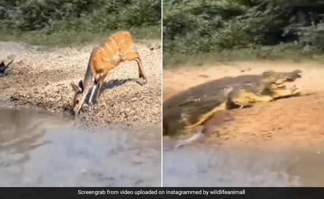 Shared by an Instagram page named Wild Life Animall two days ago, the video shows the crocodile trying to be cunning by hunting a deer, but things did not go well for it as the deer can be seen escaping within a fraction of seconds.