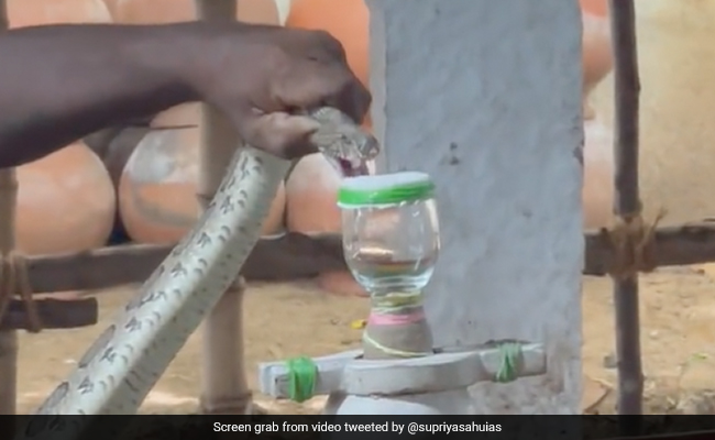 Indian Administrative Service (IAS) officer Supriya Sahu shared a video on her social media that will surely give you goosebumps. We all know bites from a venomous snake can be fatal. Ms Sahu shared a video which shows the venom of a snake being extracted and how it can be used as an antidote. The video features Irula tribe members, an ethnic group in Tamil Nadu who are experts in extracting snake venom. The tribe has acquired special permission from the government to extract the snake venom and use it for medicinal purposes. The video shows a man carefully handling a snake and extracting venom into a small container.