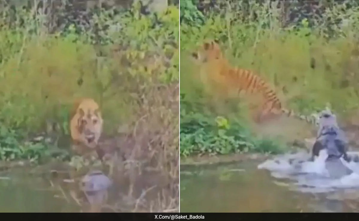 A dramatic wildlife encounter was captured in the Dhikala Zone of Jim Corbett Tiger Reserve in Bijnor, Uttar Pradesh, where a tiger narrowly escaped a sudden attack by a crocodile near the Ramganga River. The incident, recorded by tourists on a jungle safari, has rapidly gained attention on social media, highlighting both the beauty and danger of life in the wild.