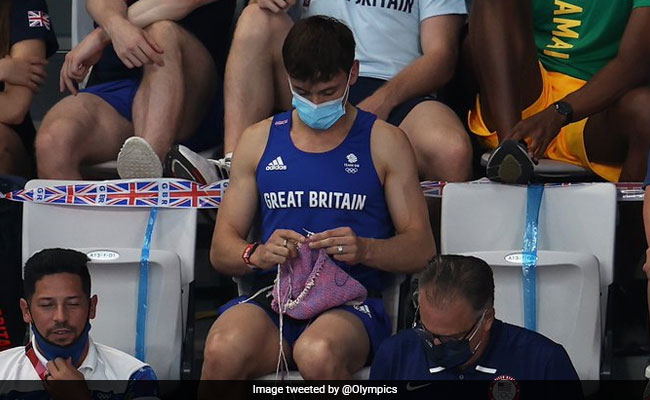 Cameras captured the star diver watching the action from the stands while knitting - and pictures of the scene soon went viral on social media. A photo of Tom Daley wielding two knitting needles and purple yarn was shared by the official Olympics Twitter account and has racked up over 1.6 lakh 'likes' in a day.