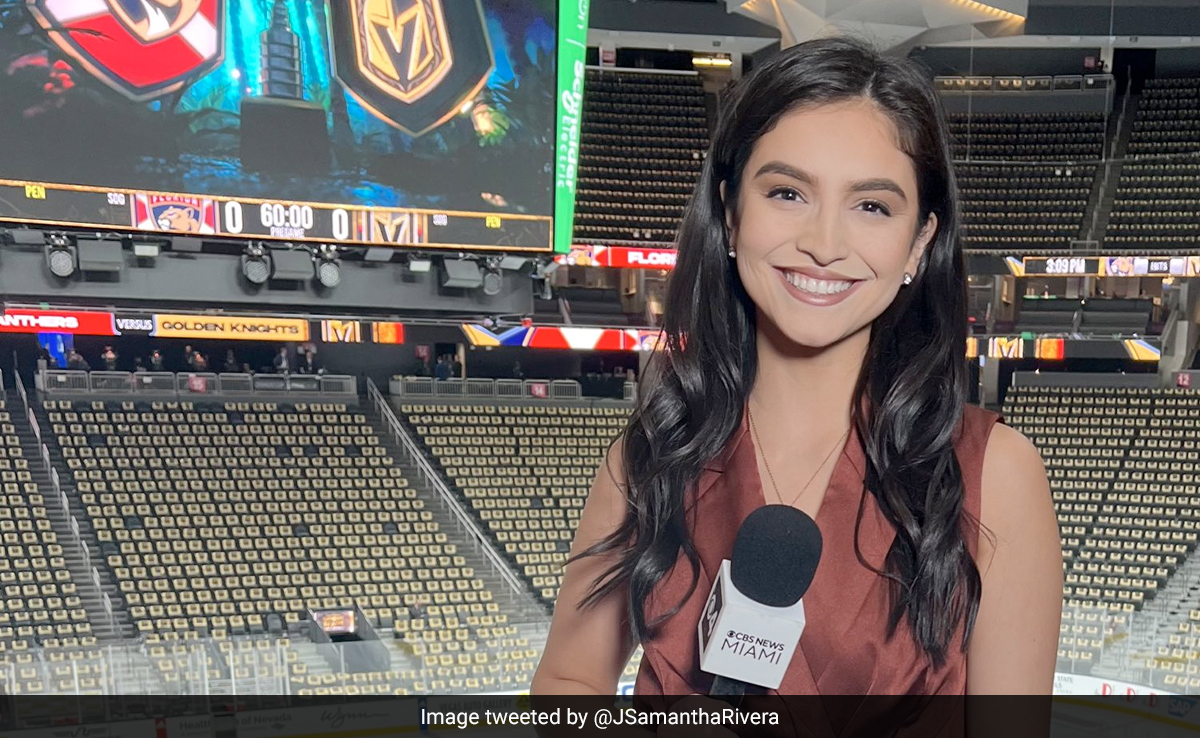 CBS Miami sports reporter Samantha Rivera was busy in her coverage of the Vegas Golden Knights' 7-2 win over the Florida Panthers at T-Mobile Arena in Las Vegas. Suddenly, one obnoxious fan tried to come into the camera frame, shouting when Samantha was speaking on live TV.