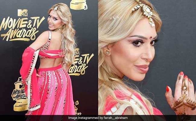 American reality television star Farrah Abraham isn't waiting to hear what the fashion police has to say about her outfit at the MTV Movie and TV Awards. She has already named herself "Best Dressed." Well, on Instagram anyway. The Teen Mom OG star wore a bright pink lehenga, mirror-work choli, a bindi, maang tika, mehendi and lots and lots of bangles to the awards show held in Los Angeles on Sunday. She has posted a number of pictures of her "Bollywood-inspired" look on her official social media handles and many online are accusing her of cultural appropriation.