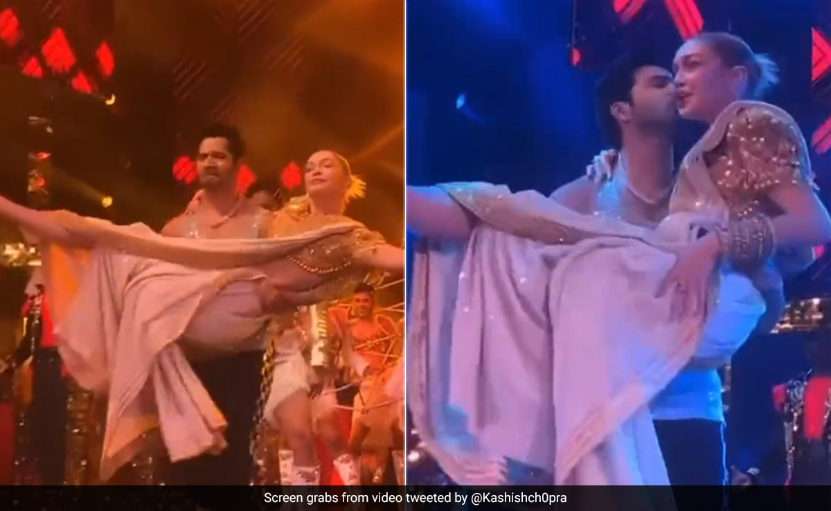 In the now-viral video, Mr Dhawan is seen inviting Ms Hadid onto the stage. He then picks her up in his arms and spins her around. Later, he also gives Ms Hadid a peck on her cheek. Internet users slammed, saying this is "the most embarrassing thing on the internet".