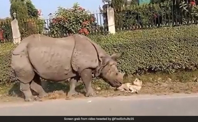 A humorous interaction between a rhino and a street dog is seen in a video that is going viral and making people laugh on social media. The opening scene of the video shows a rhinoceros strolling by a sleeping street dog. After reaching close to the dog, the rhino lowers its head and tries to poke it with the horn. Just then, the dozing dog opens its eyes and runs away after spotting the enormous creature. The now-viral video was posted to Twitter by a handle called Fred Schultz on November 15. This video is just too good to miss.