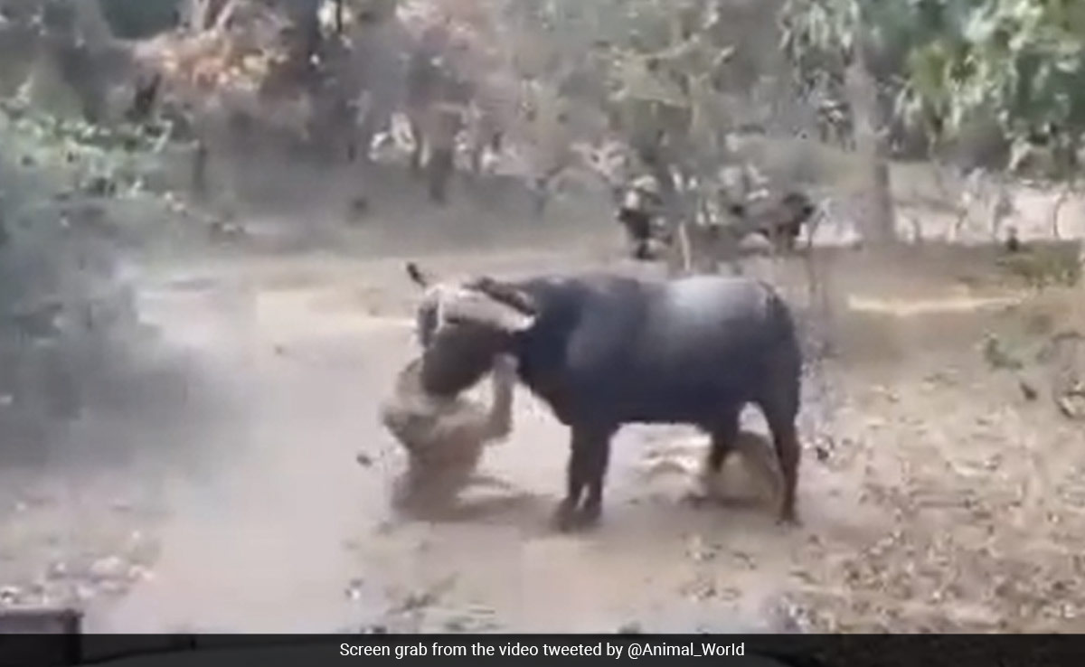 A video making rounds on social media shows a buffalo fighting back and defeating two lions that attacked it. The incident was captured by tourists who were on board a safari vehicle, hoping to witness wildlife in its natural habitat.