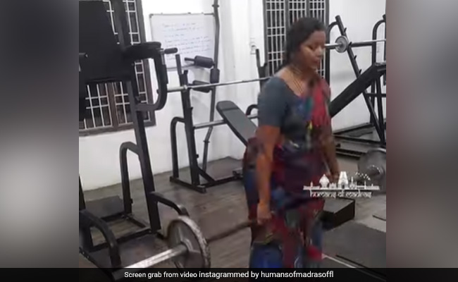In a video shared on Instagram jointly by Humans of Madras and Madras Barbell, the 56-year-old woman is seen working out in the gym. She is also seen lifting heavy weights and dumbbells and various other gym machines and equipment, all of it while wearing a saree. The woman is working out with her daughter-in-law. Towards the end of the video, she is also honoured by the staff members along with other women in the gym.