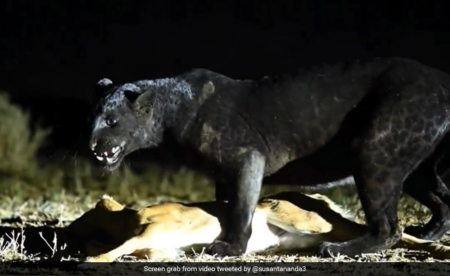 A video showing a black leopard hunting a deer in the wild under a bright spotlight has surfaced on the internet. The clip was shared on Twitter by Indian Forest Service (IFS) officer Susanta Nanda, with the caption, "A perfect capture. Both by the leopard & the videographer."