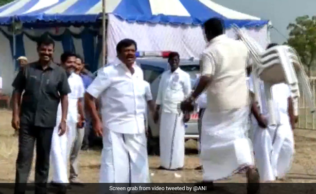 The incident took place when the minister was checking the arrangements for an event where Tamil Nadu Chief Minister MK Stalin is expected to take part tomorrow.
