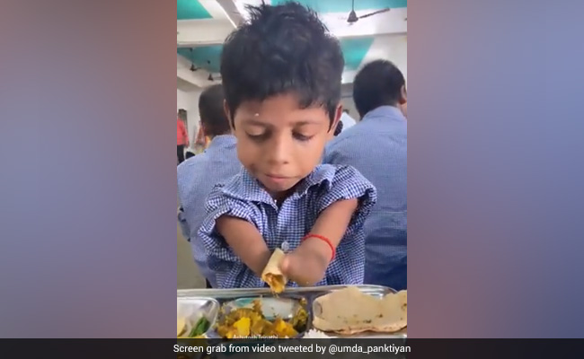 The clip, shared on Twitter, shows a boy, in a uniform, eating his lunch at what appears to be a school canteen. Upon looking closer, one can see that both hands of the child are amputated from below the elbow.