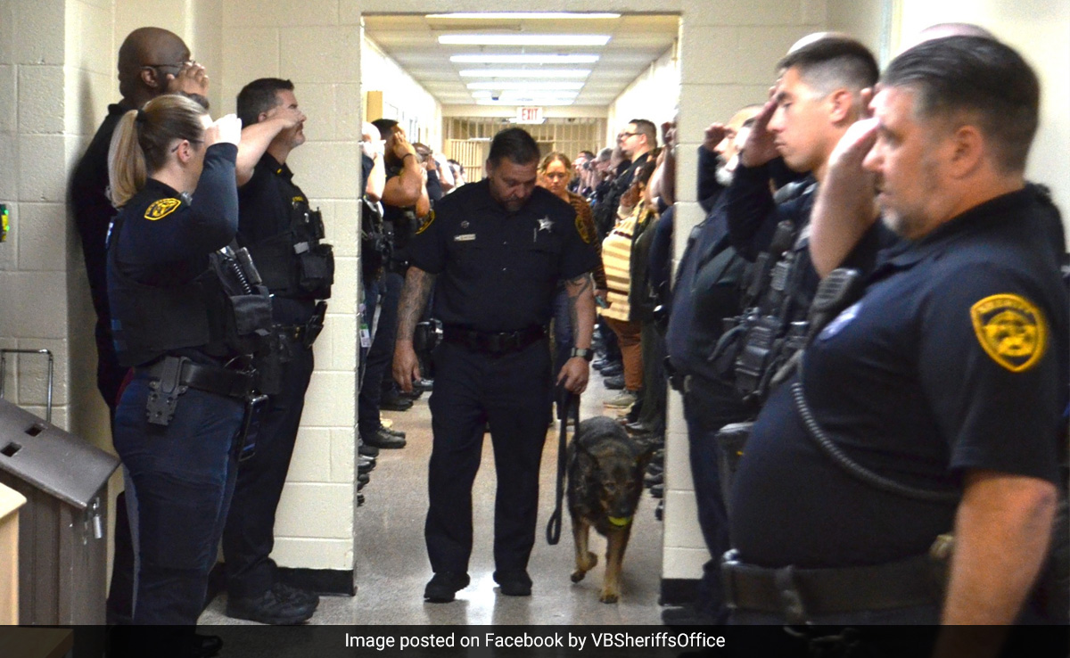 The Virginia Beach Sheriff's Office held a special ceremony to honour her service. Deputies lined the hallway and saluted as Candy walked by one last time.