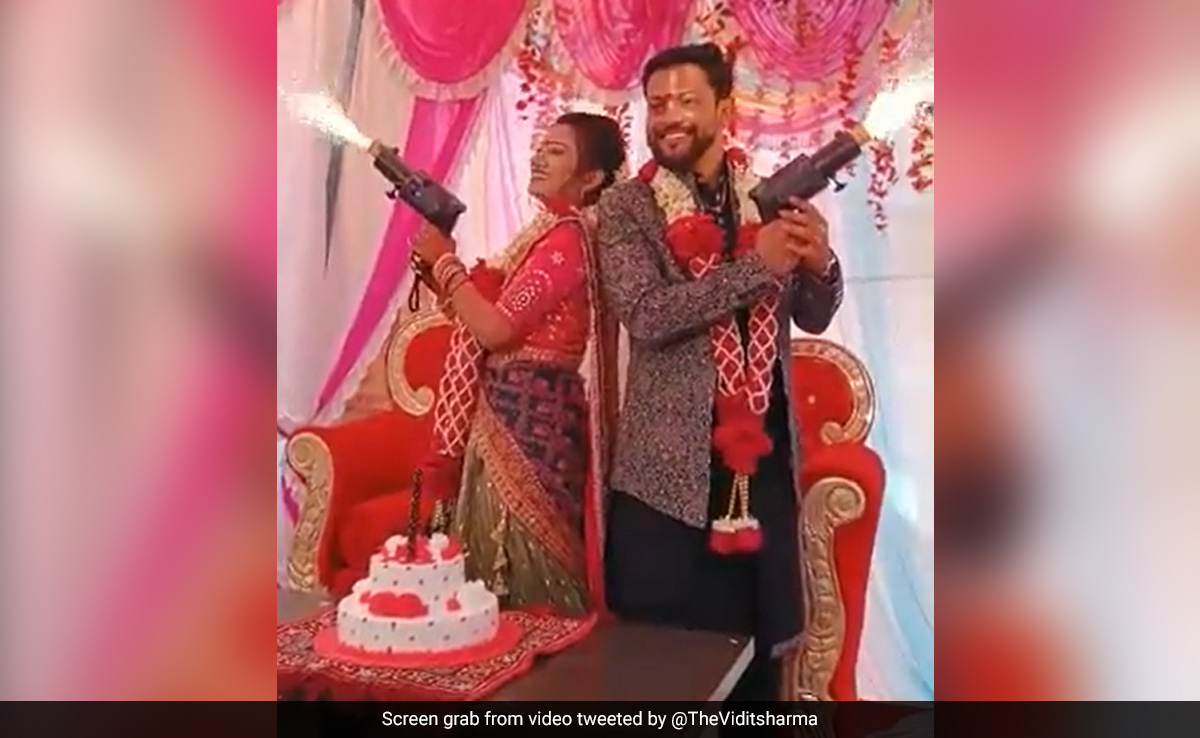 A video from Maharashtra shows a bride and groom posing with a sparkle gun on their wedding day. In the 13-second clip, the couple can be seen happily posing together while holding the guns. As soon as they fired them, one of the guns exploded and hit the bride in her face. The bride quickly dropped the gun as everyone rushed to save her. The video cuts off abruptly.