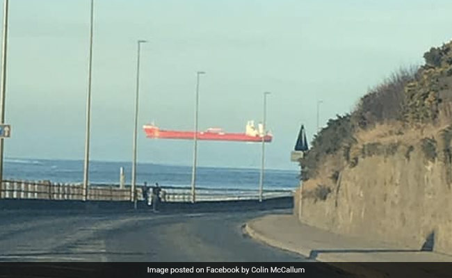 A man in Scotland was stunned when he saw a ship seemingly floating in the air on Friday. Colin McCallum saw the red vessel on the horizon as he travelled through Banff, Aberdeenshire, reports The Mirror. In a photo which he shared on Facebook, the ship appears to be floating a few inches above the surface of water.