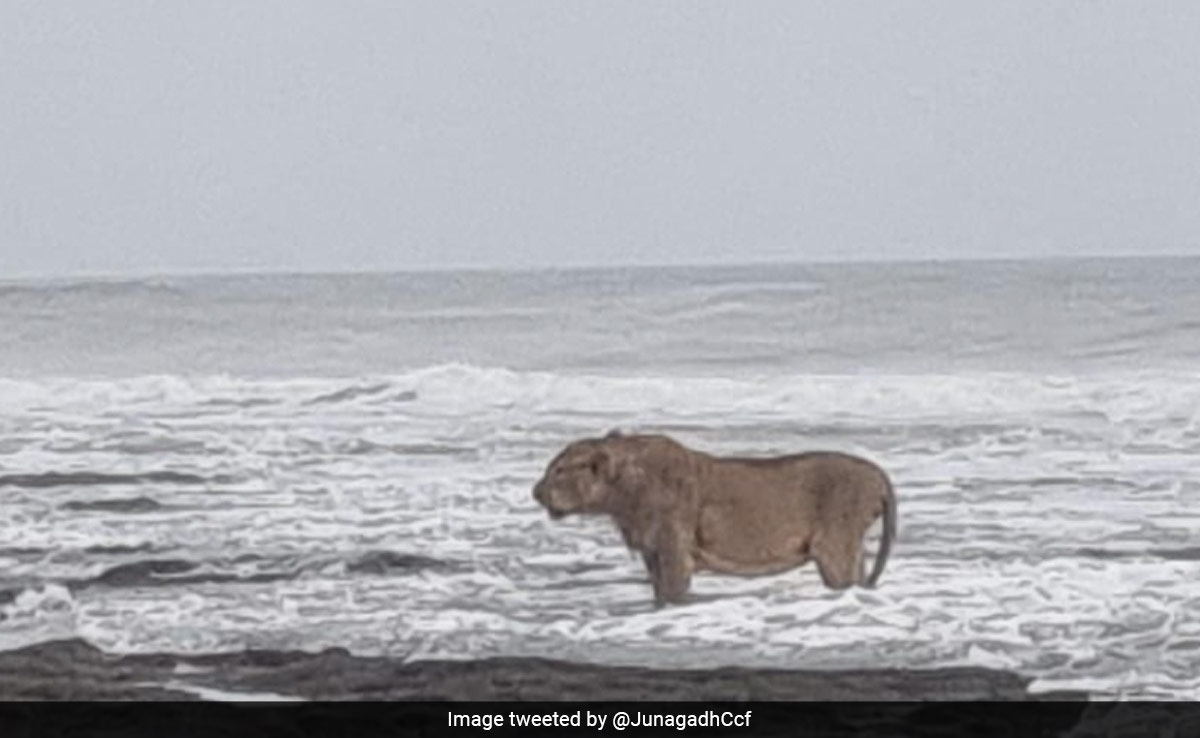 A stunning and rare image of an Asiatic lion standing on the shores of the Arabian Sea in Gujarat's Junagadh has left the internet in awe. In the undated picture that has gone viral, the lion can be seen casually standing on the banks of the Arabian Sea, as if it were enjoying the waves of the sea.
