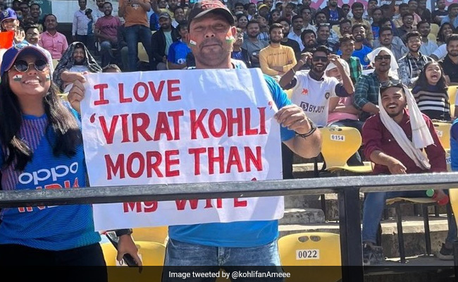 During the game between India and Australia, as Virat Kohli joined India captain Rohit Sharma at the crease during the opening session, a fan was spotted among the spectators, holding a hilarious yet epic poster. "I love Virat Kohli more than my wife," the placard read, which the spectator was seen waving from the stands.