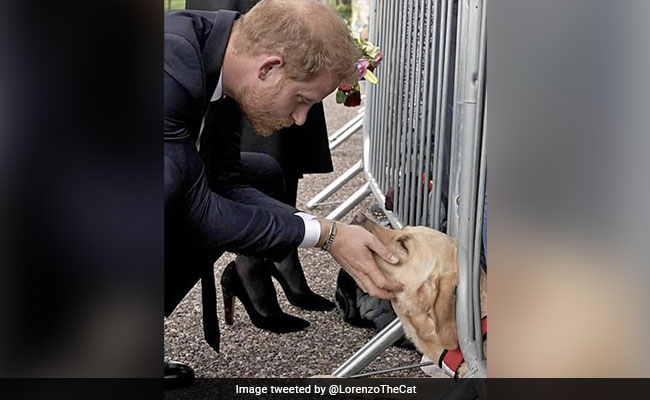 A heartwarming photo of Prince Harry sharing a moment of mourning with a loving dog during a walkabout in Windsor has gone viral on the internet.