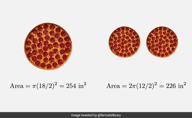 Contrary to what you might have argued your whole life, mathematics does have a few practical applications as well. It can, for example, help you decide how to get the most pizza for your buck. A tweet going viral on the Internet right now explains how ordering an 18-inch pizza is better than ordering two 12-inch pizzas. Confused? Take a look:
