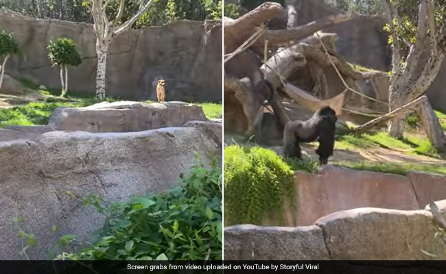 In the footage, the gorilla is seen chasing the stray dog that managed to enter its enclosure. It also shows the dog running from one side of the enclosure to the other, as a large gorilla named Frank stomps closely behind. The viral video shows both the animals in a cat-and-mouse chase, as onlookers can be heard shouting the gorilla's name in hopes of distracting the ape.